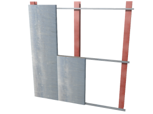 Fachada de paneles sándwich de acero galvanizado, modelo PF1 50 M "ACH", de 50 mm de espesor y 1150 mm de anchura, formados por cara exterior de chapa microgrecada acabado prelacado, Granite Standard, RC3 y RUV2, según UNE-EN 10169, de 0,5 mm de espesor, alma aislante de lana de roca de densidad media 120 kg/m³, y cara interior de chapa nervada acabado prelacado, Granite Standard, de 0,5 mm de espesor, conductividad térmica 0,69 W/(mK), Euroclase A2-s1, d0 de reacción al fuego según UNE-EN 13501-1, resistencia al fuego EI 30, según UNE-EN 13501-2, colocados en posición vertical y fijados mecánicamente con sistema de fijación oculta a una estructura portante o auxiliar. Incluso accesorios de fijación de los paneles y cinta flexible de butilo, adhesiva por ambas caras, para el sellado de estanqueidad de los solapes entre paneles sándwich. | ||