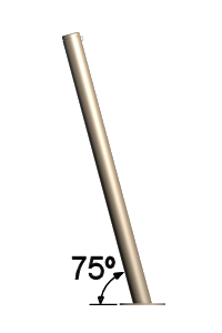 Mástil para toldo de vela tensada, de 4500 mm de altura, de perfil hueco cuadrado de acero galvanizado de 100x100 mm y 5 mm de espesor, soldado formando un ángulo de 75° a placa de anclaje de 300x300 mm y 10 mm de espesor con pernos para fijación al soporte.