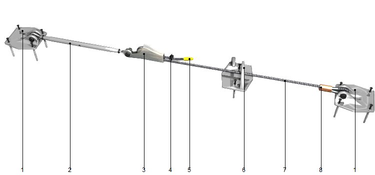 | YCL110 | Línea de anclaje horizontal permanente, de cable de acero, sin amortiguador de caídas | |