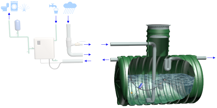 | Cisterna prefabricada para red de aprovechamiento de aguas pluviales. Instalación enterrada | ||