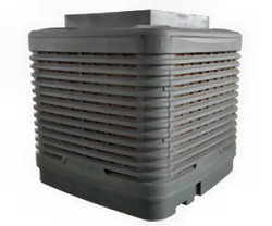 Climatizador evaporativo industrial, caudal de aire nominal 30000 m³/h, ventilador axial con alimentación trifásica a 400 V, de 2 velocidades, salida de aire superior, potencia frigorífica 29900 W, presión sonora 80 dBA, consumo eléctrico 3000 W, dimensiones 1250x1250x1426 mm, para conexión, por su salida de aire superior, al conducto de ventilación (no incluido en este precio). |