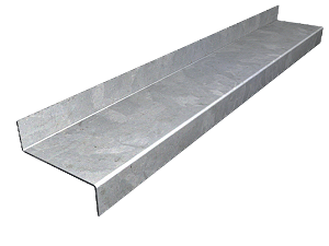 Pieza de remate de chapa plegada de acero galvanizado, espesor 0,8 mm, desarrollo 300 mm y 3 pliegues; fijación con tornillos autotaladrantes de acero galvanizado, y sellado de las juntas entre piezas y, en su caso, de las uniones con los muros con sellador adhesivo monocomponente.